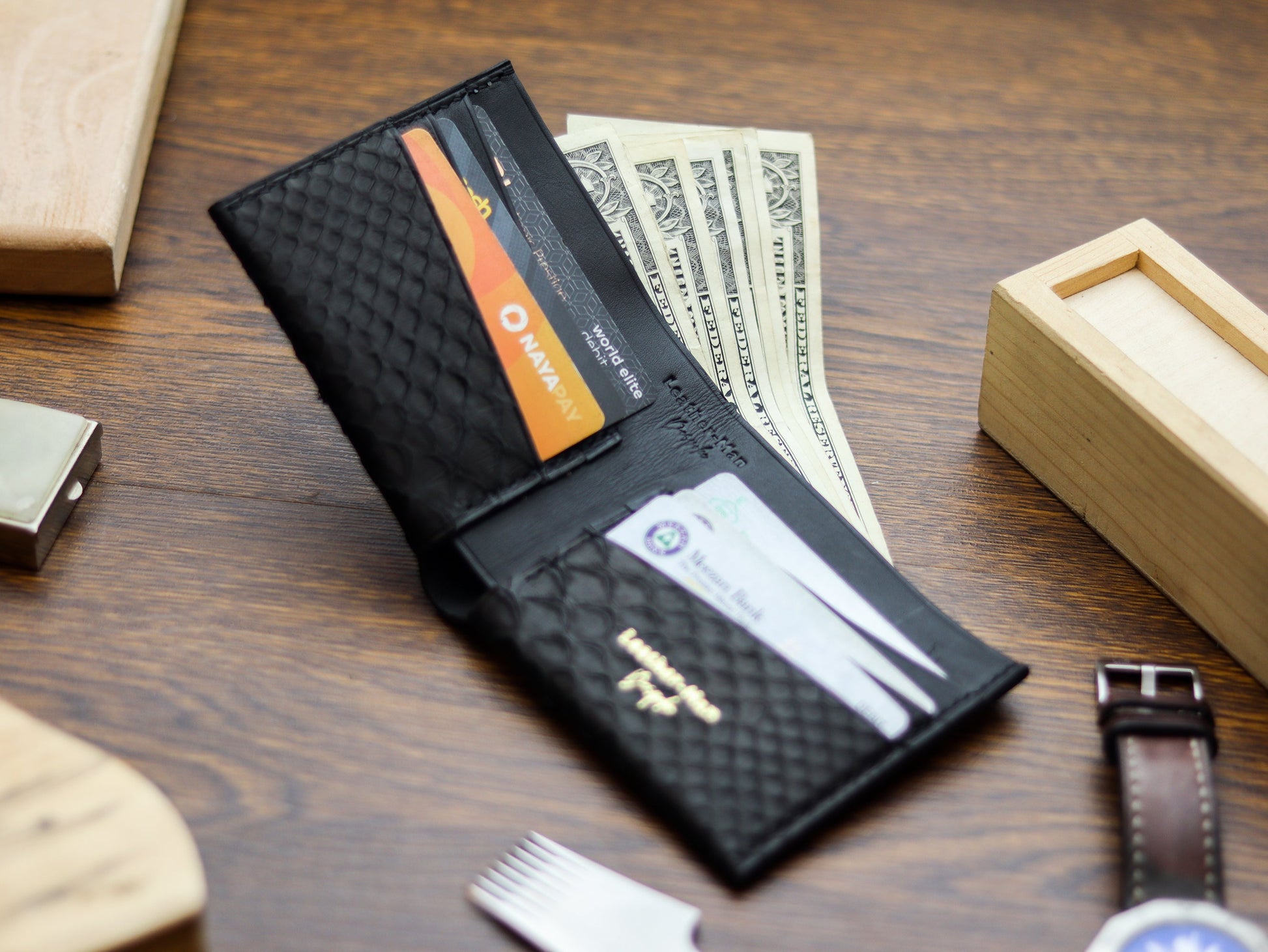 ATTICUS - is our newly designed bifold wallet which has 6 card pockets and 1 cash compartment. The design of our "ATTICUS" is one of a kind with futuristic vibe. Very compact size but it can hold as much as your current wallet. Made with A+ grade Python Skin which showers the most premium feel.
