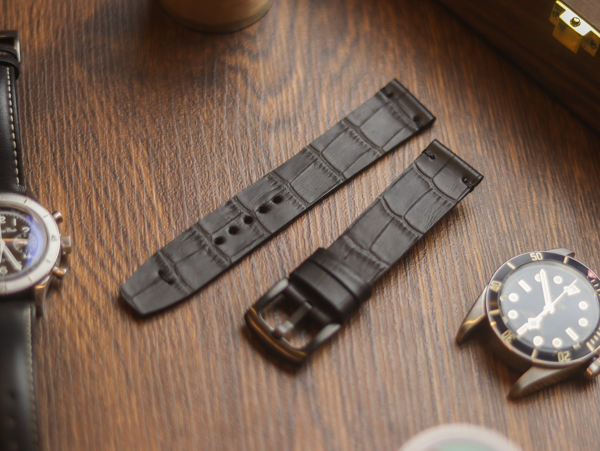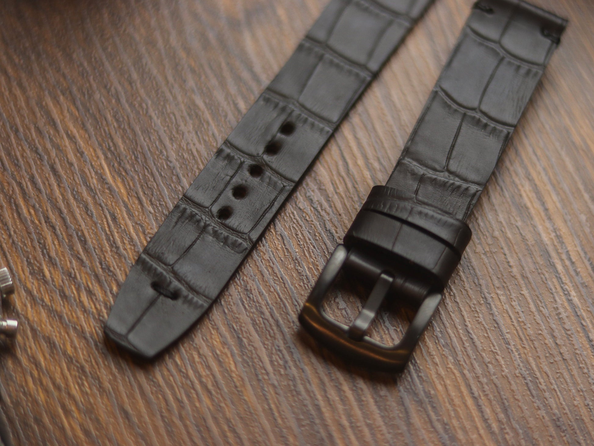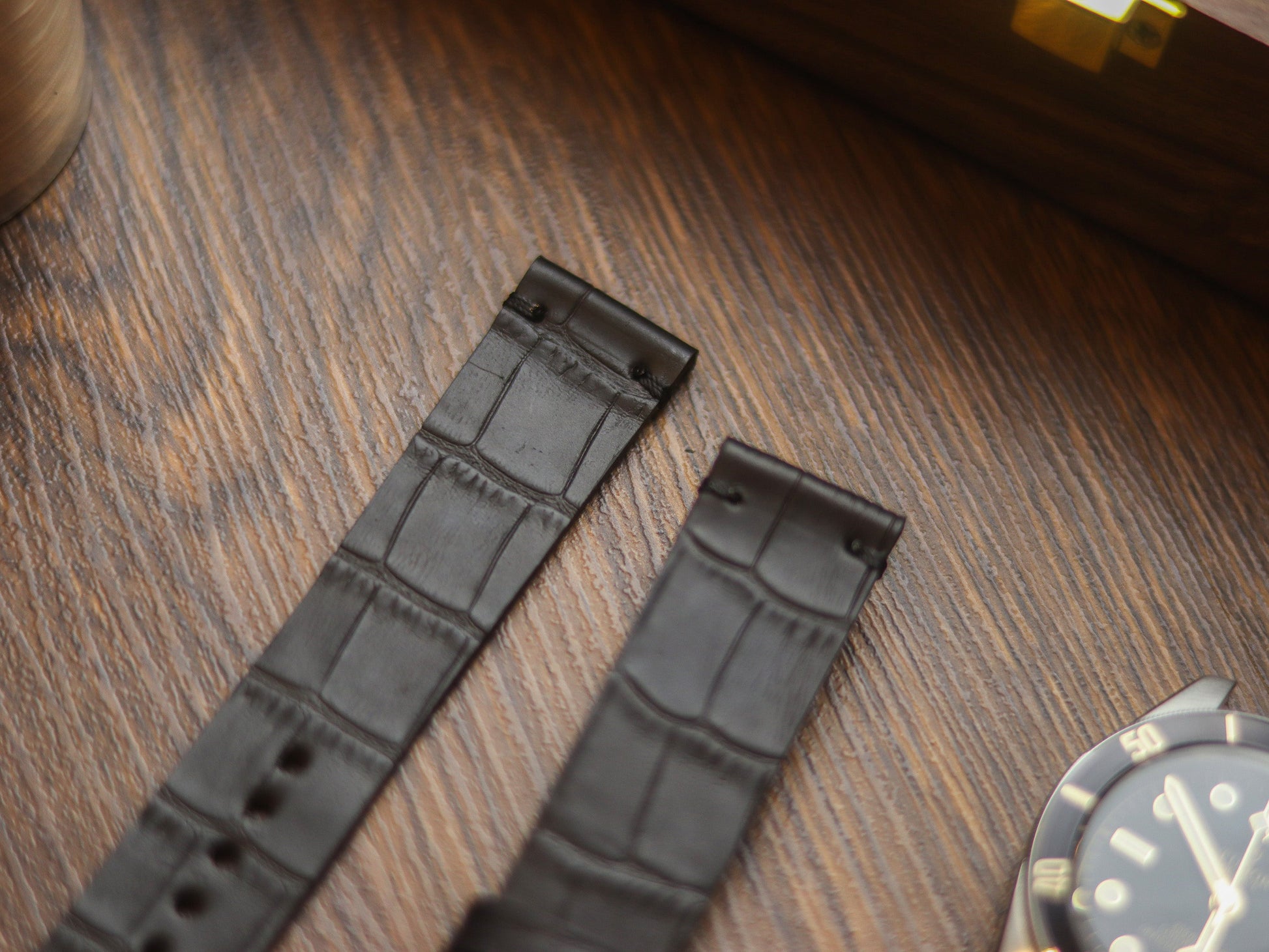 BLACK CROCO HAND-CRAFTED WATCH STRAPS - MINIMAL STITCHED U-TAIL