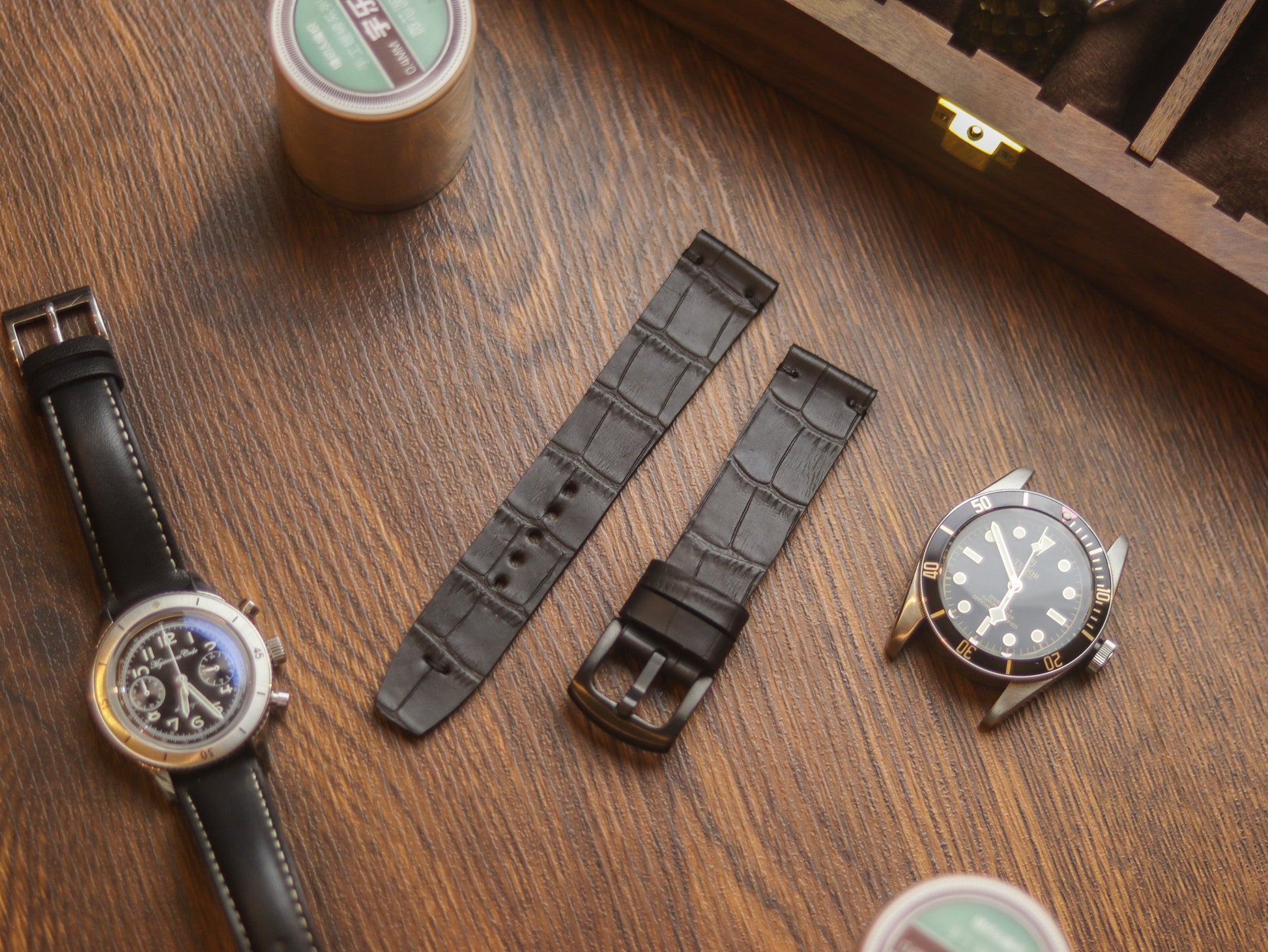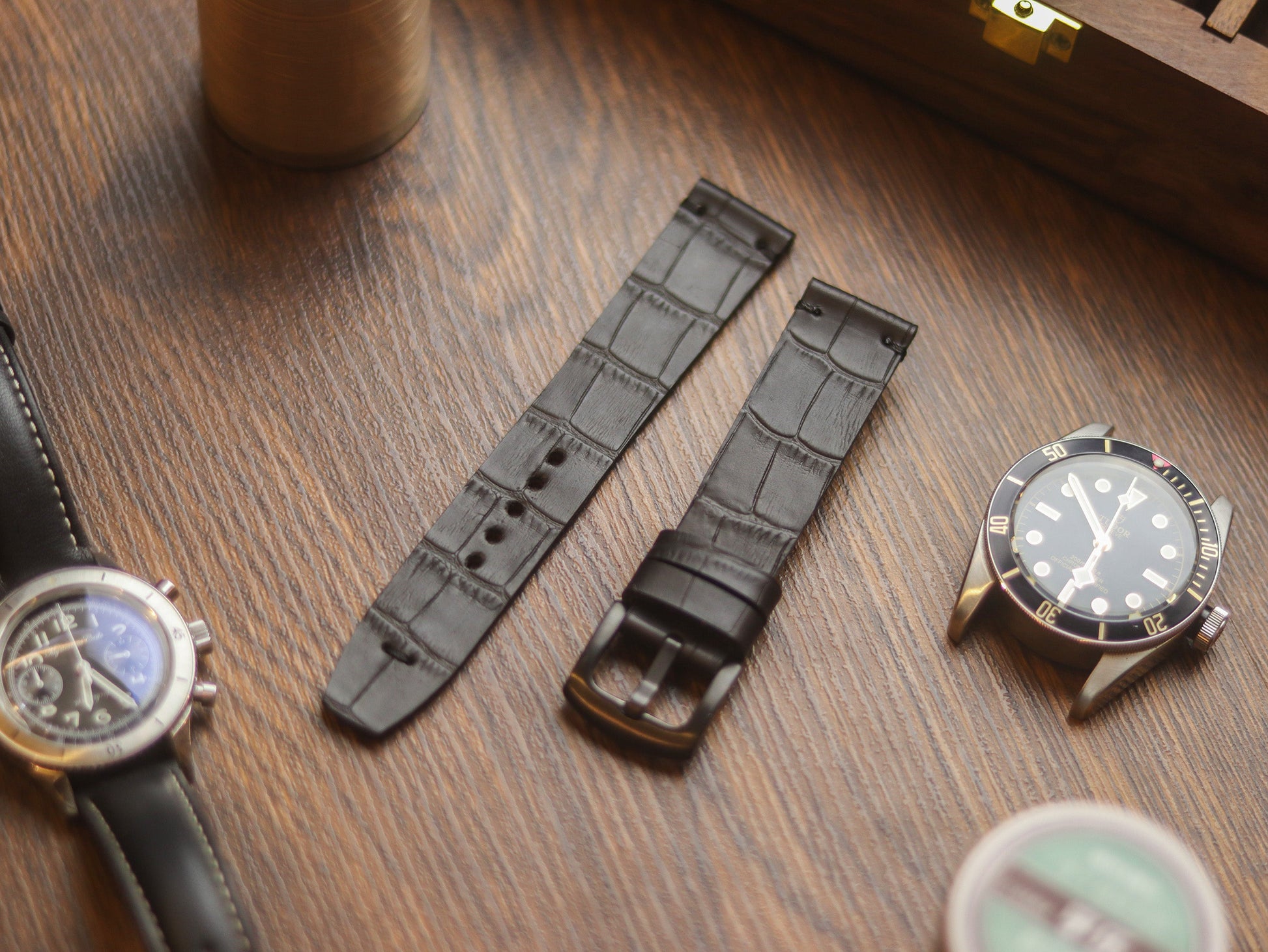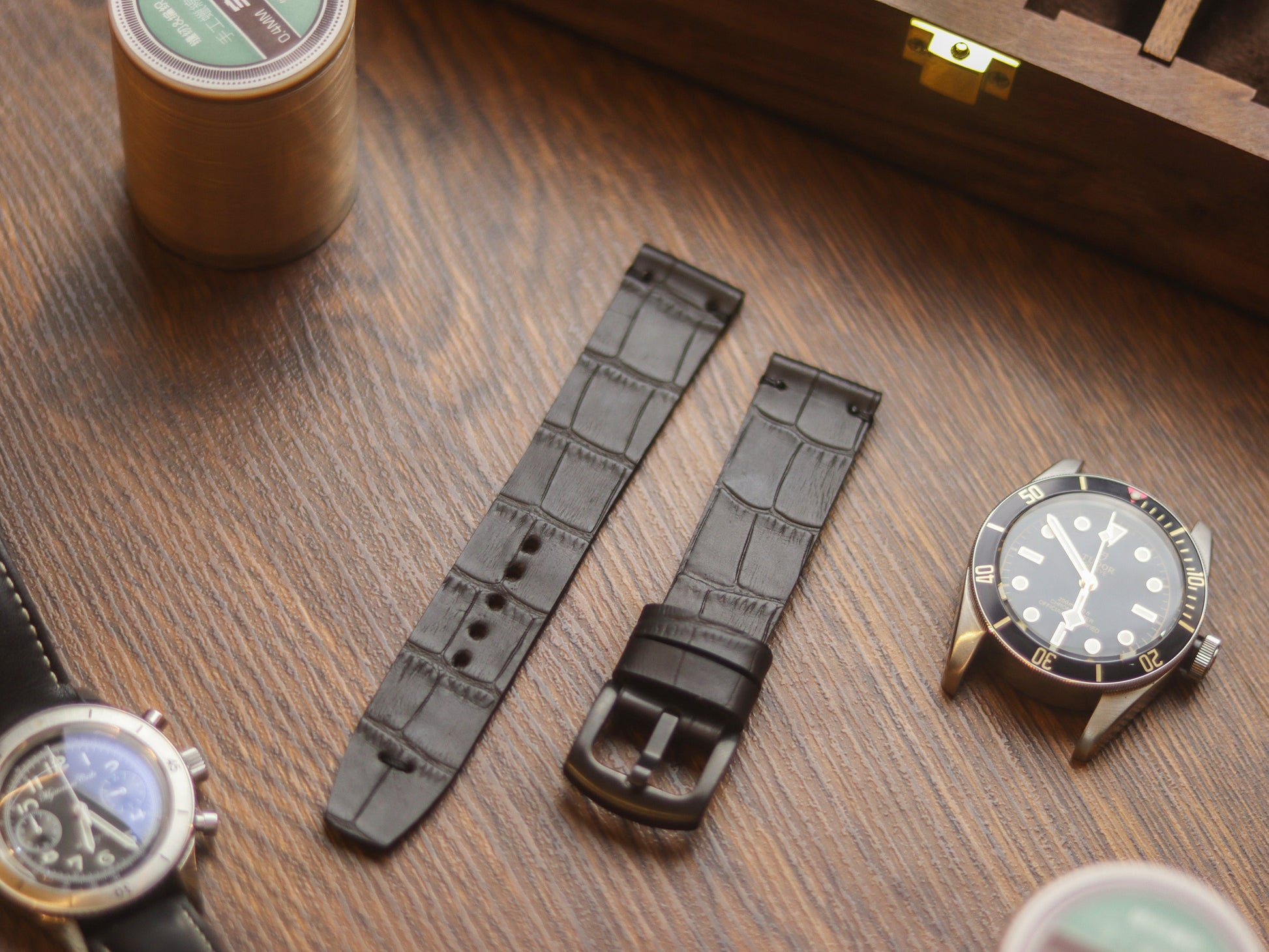 BLACK CROCO HAND-CRAFTED WATCH STRAPS - MINIMAL STITCHED U-TAIL