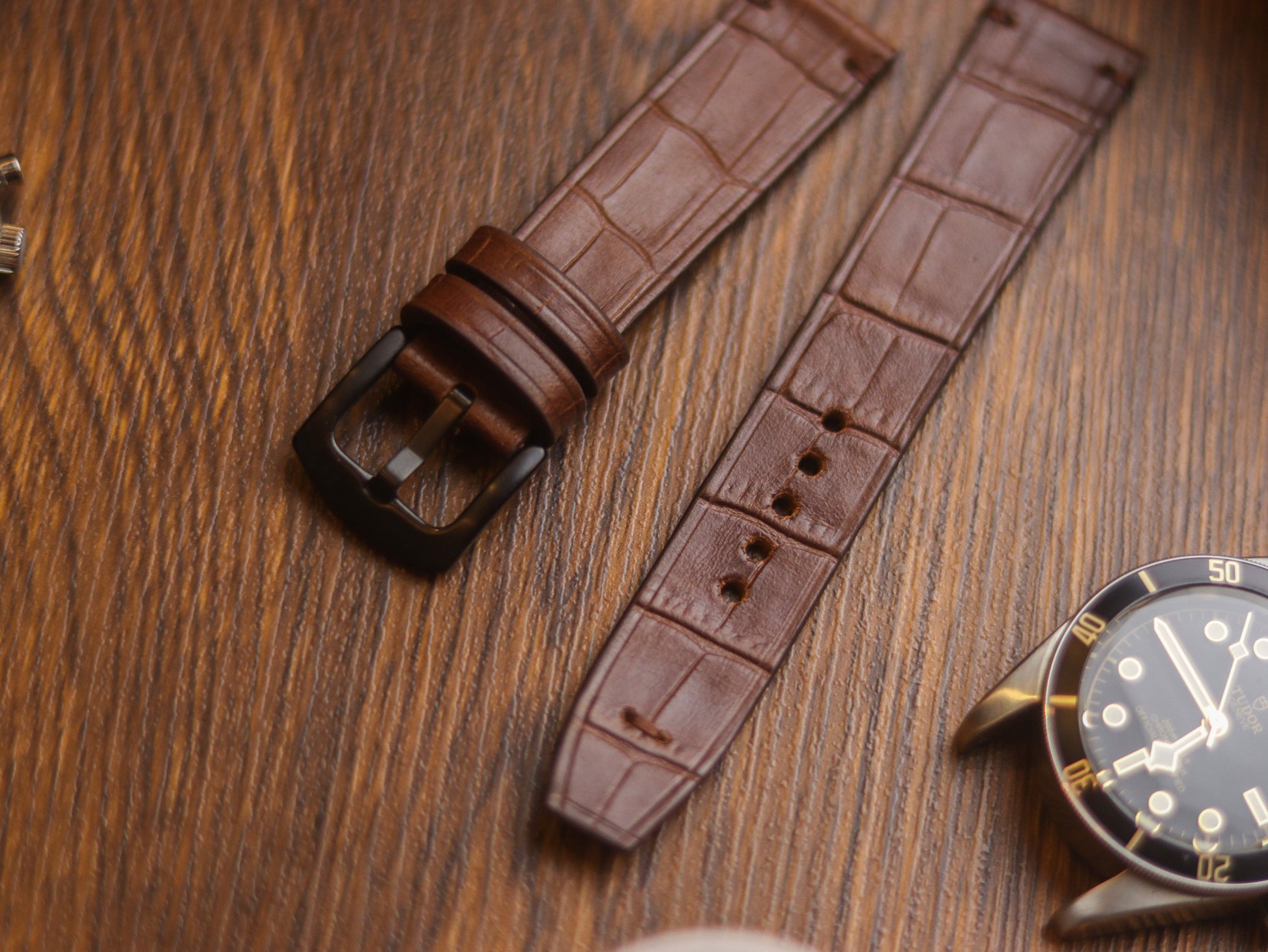 BROWN CROCO HAND-CRAFTED WATCH STRAPS - MINIMAL STITCHED U-TAIL