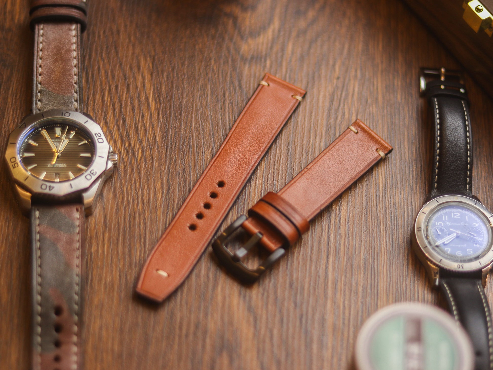 TAN BROWN HAND-CRAFTED WATCH STRAPS - MINIMAL STITCHED U-TAIL