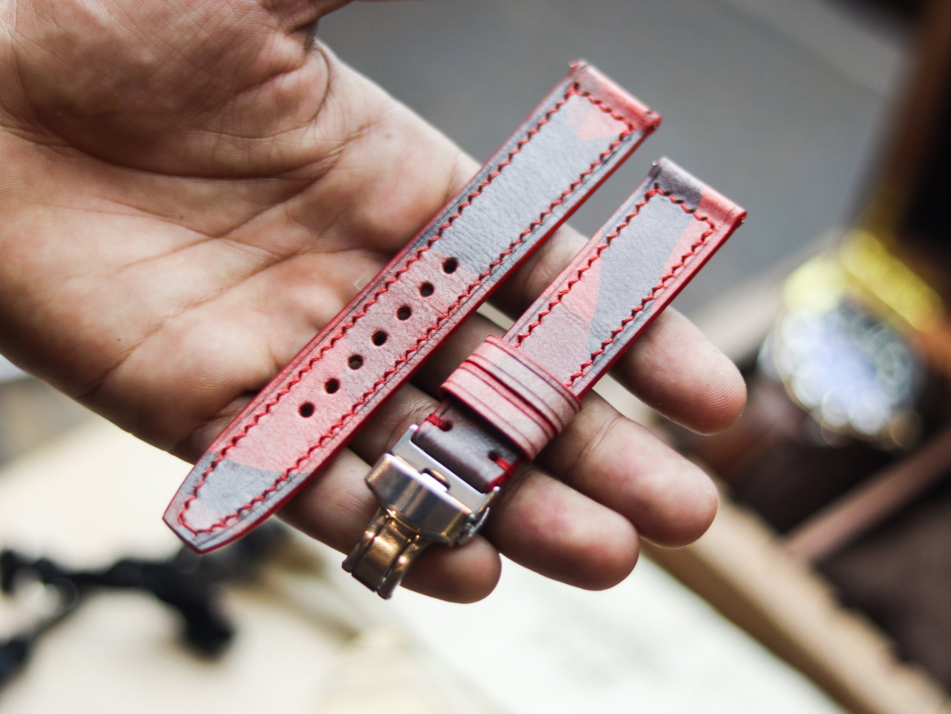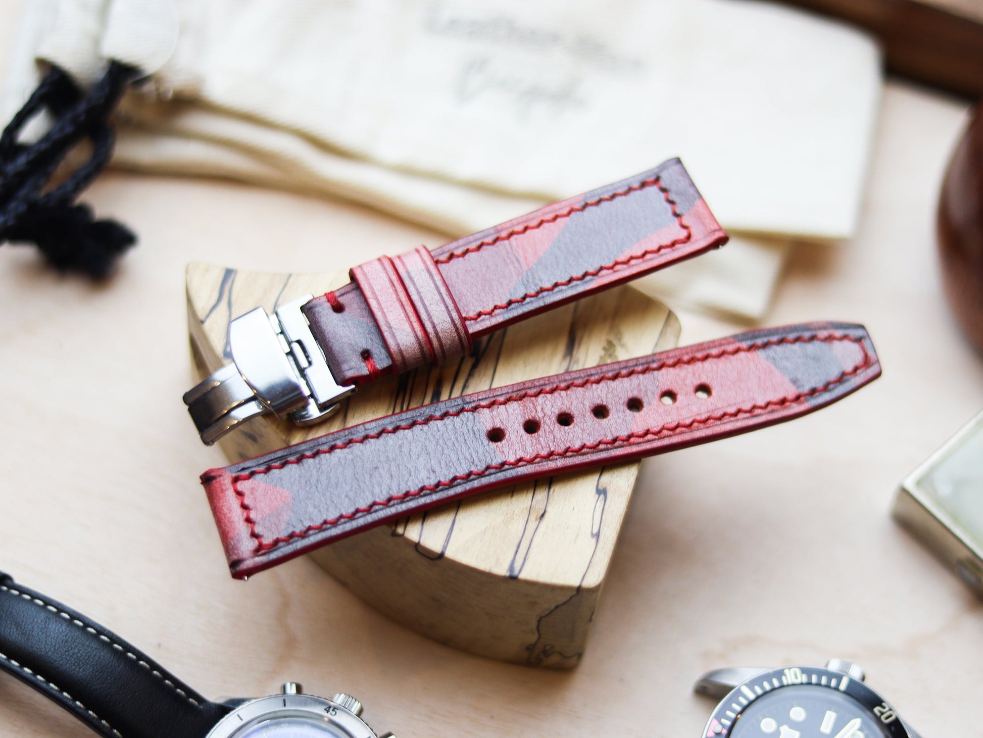 ITALIAN WAXED CAMOUFLAGE HAND-CRAFTED STRAPS BOX STITCHED - COREL RED