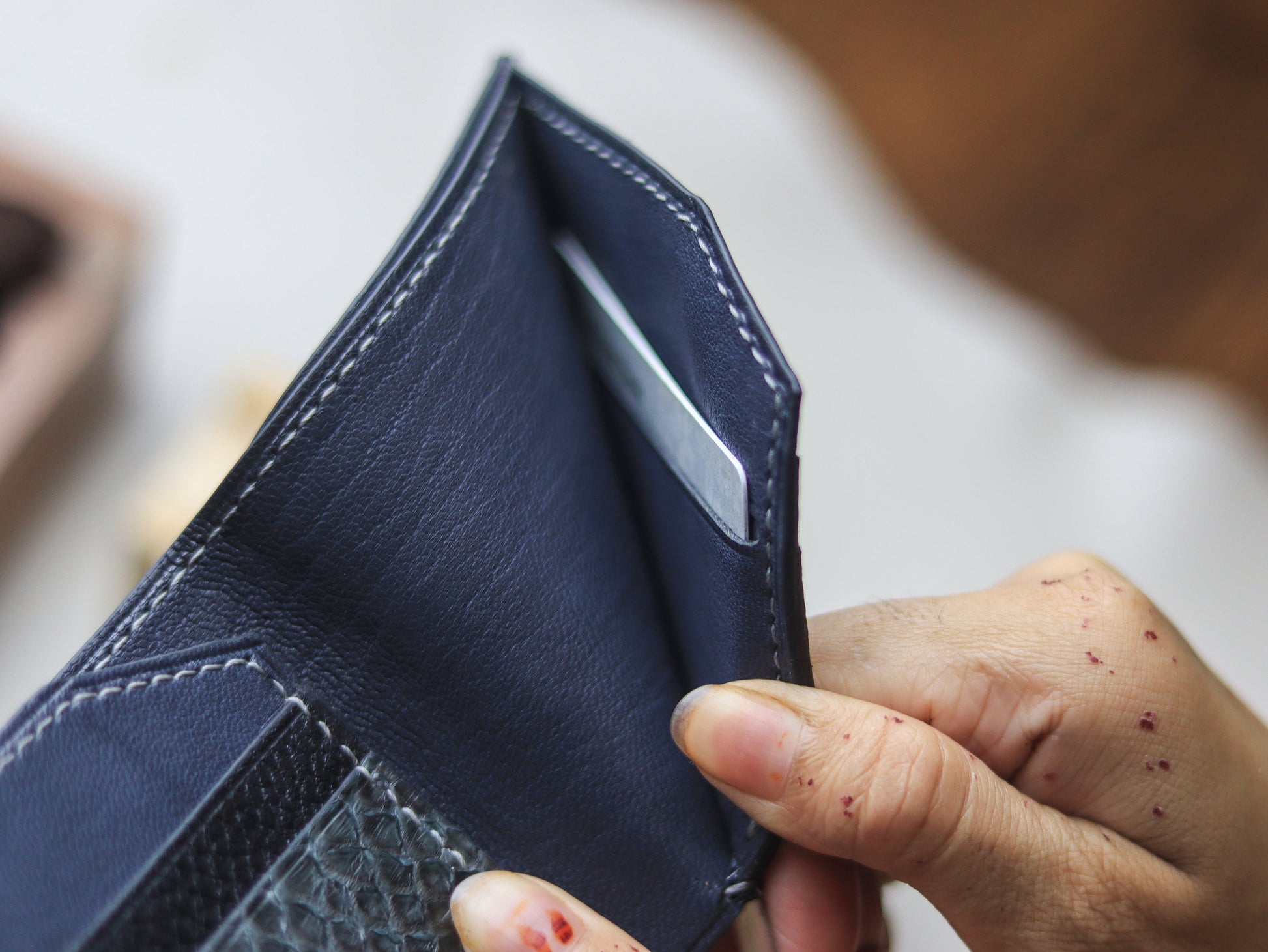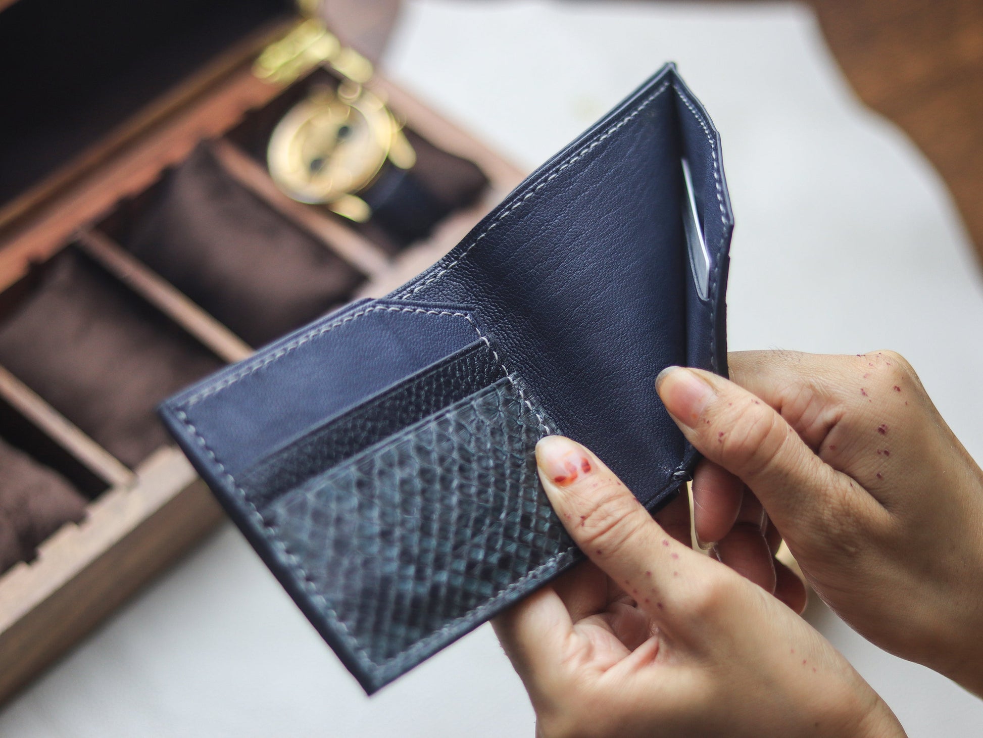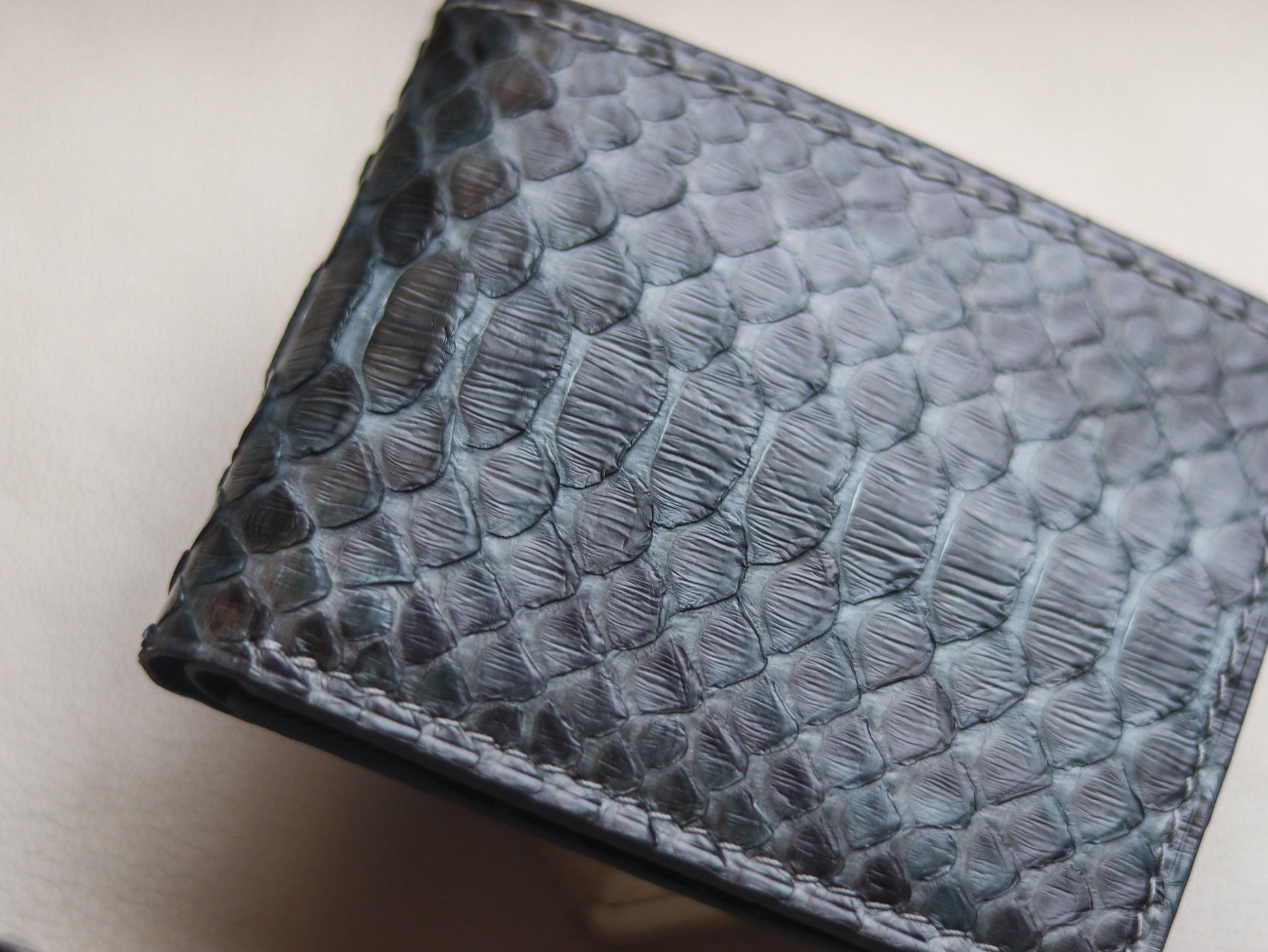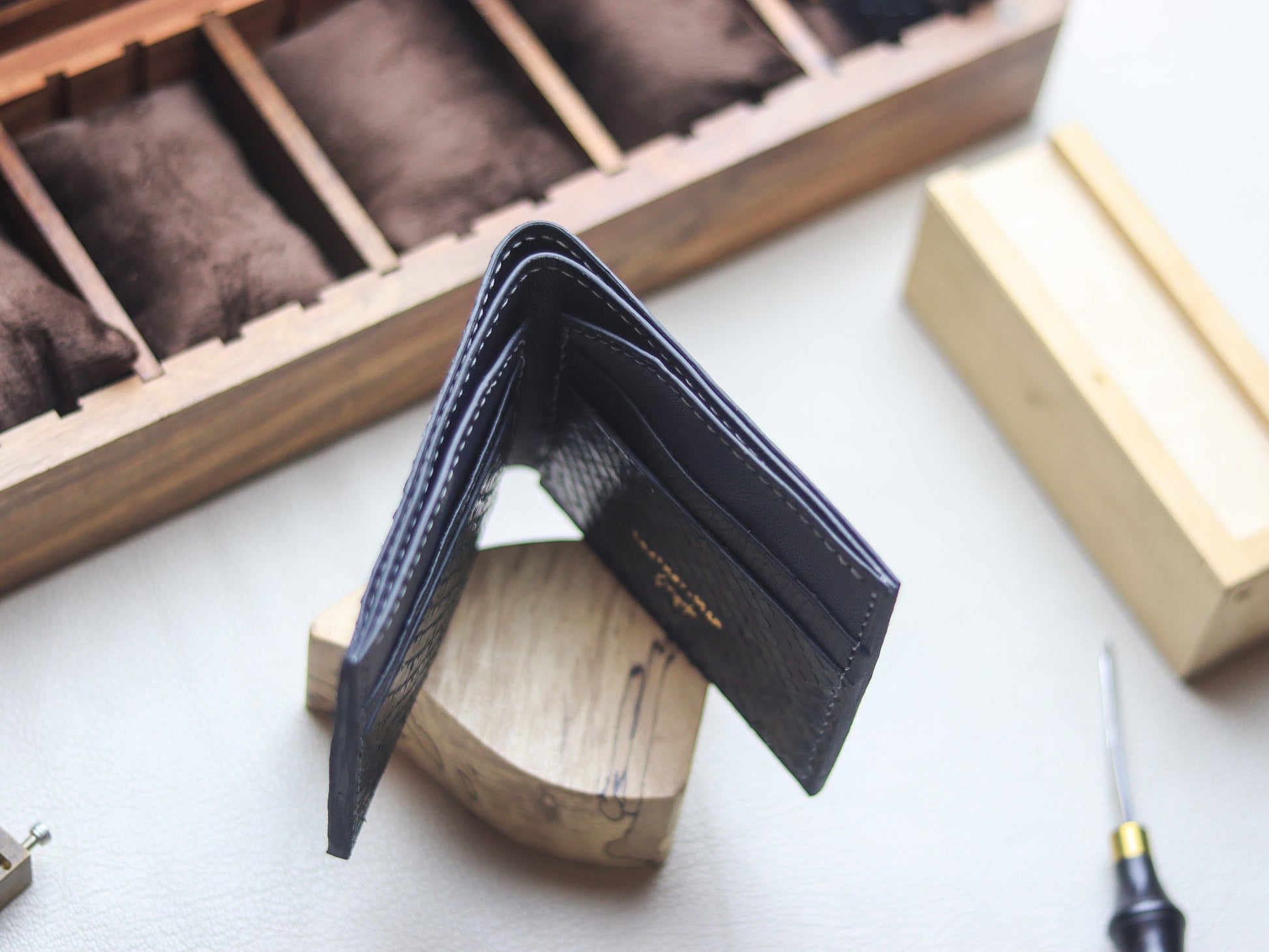 "Larson" is our latest men's bi-fold wallet. Crafted with grade A Real Python leather sourced from Vietnam & Indonesia. The inner leather is high quality Italian chevre goat skin. With thoughtful organization and high-quality materials, this custom leather wallet for men is as practical as it is stylish. It has 4 card slots, 2 hidden card slots and 2 bill slots. It is perfect to carry 8 to 10 cards with cash. Its unique design has an extra cash compartment.